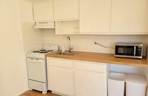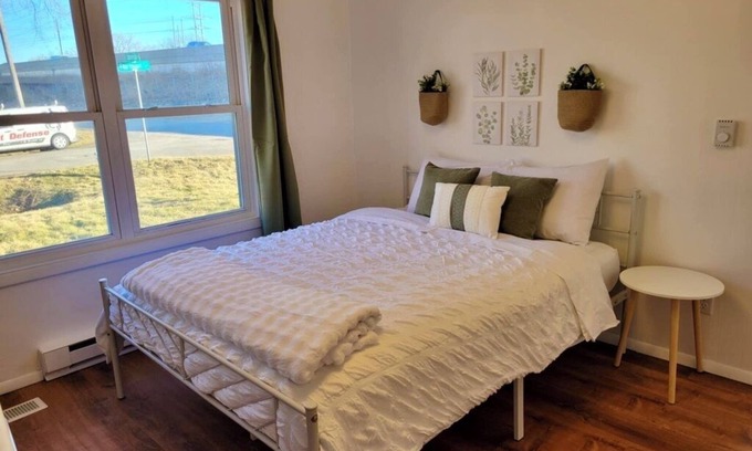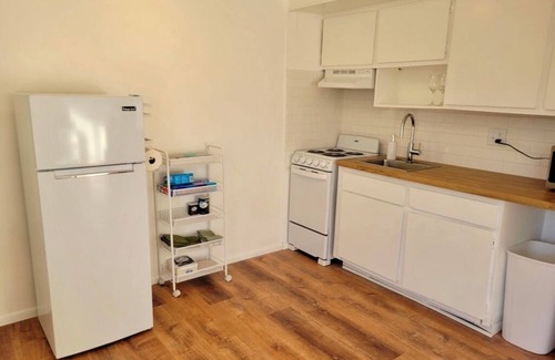 This charming 1-bedroom, 1-bathroom apartment features a cozy queen bed, WiFi, heating and A/C, full kitchen, in-unit laundry, and off-street parking. It is newly renovated and waiting to be your next home away from home!