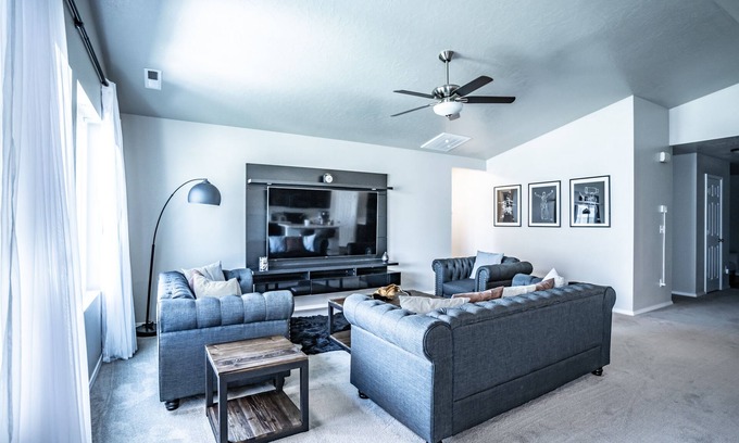 All but one bedroom have smart TV's with popular streaming applications already installed: Netflix, Hulu and Amazon Prime. We also have sizable backyard and a patio area that was set up to be a nice hangout space.