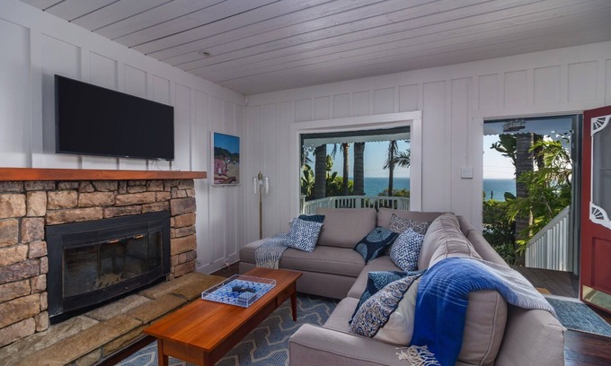Special Features of the home: Private back patio with gas fire pit and gas grill - Front porch with ocean views - 3 Flat Screen TV'S - Free high-speed WiFi - Cable TV - Washer & Dryer - Refrigerator with ice maker - Fully Equipped Kitchen - Beach Chairs and Umbrella - 2 Indoor and 1 Outdoor Shower - Street Parking - Near Summerland Cafe's and Shops - Minutes away from Santa Barbara, Lower Village, Montecito & Carpinteria.The inside fireplace is for looks only and is not functional.