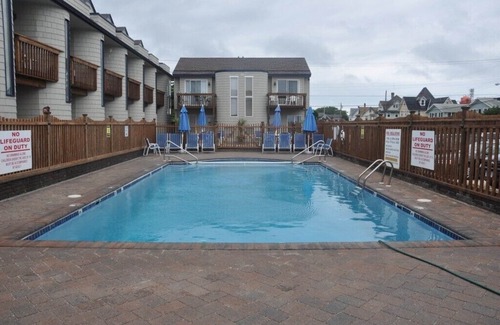 Our beautiful decorated condo is located on the beach in the heart of Beach Haven. The condo development is located at 20 Pearl Street and consists of 17 units. Each unit is located side by side surrounding our heated pool. The common pool deck and patios are equipped with pool/patio chairs ,tables and umbrellas. The development is completely fenced in and we have our own private entrance to the beach with an outside hose area to rinse off when you leave the beach. Our beach has a lifeguard station and a new Gazebo. Each unit has its own private parking space. Our condo is within walking distance to several restaurants and attractions including but not limited to Engleside, Sea Shell ,Marlin ,Buckalaws , The Chicken and The Egg,Uncle Willies,Ice Cream parlors ,Murphy's Super Market, Fantasy Island, Bay fishing and more.