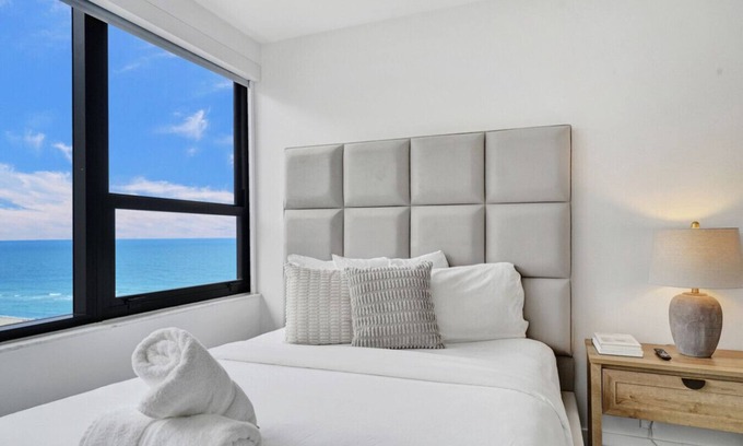 Our unit is a great option for guests looking for a spacious and well-appointed accommodation with plenty of amenities and a convenient location on the beach. It comes with 2 bedrooms and 2 bathrooms, a fully equipped kitchen with all modern appliances and cookware and serving utensils, a large open living room and dining area, a private balcony with stunning views of the ocean and city skyline, WiFi and Cable TV included.