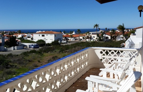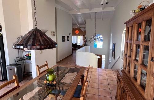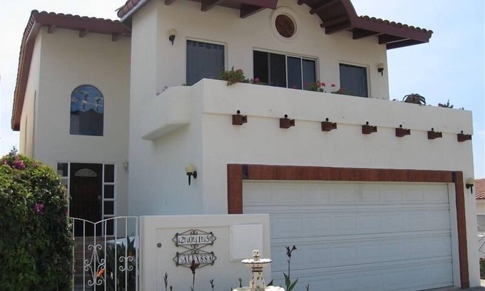 The house has panoramic views from nearly every room. Two large balconies complement the many windows; one faces the ocean and one faces towards the mountains. High vaulted ceilings for the entire second floor provide a sense of wide open space and light. There are approximately 2400 square feet of living space. The three bedrooms (with a total of four beds) are spacious and tastefully decorated and equipped. The large kitchen is equipped with modern/new appliances and all necessary cooking utensils and dishes for a large party. The living room features a large open open area with partial views of the golf course and ocean. A 45 inch flat panel smart LED TV . The house is located only about a block away from the pool and within walking distance to the Bajamar Hotel, restaurant, and bar.