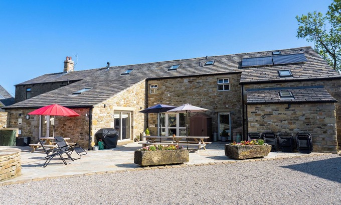 Beautiful old barn converted into holiday accommodation with a woodfired hot tub is an ideal wedding stay, perfectly situated on the Yorkshire-Lancashire border. This charming property offers everything you need to create unforgettable memories with your loved ones.