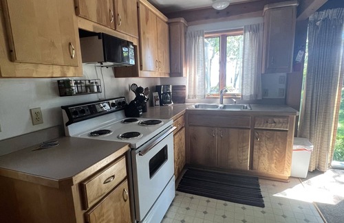 Whitecap offers a full kitchen, spacious living/dining room with gorgeous lake views and a field stone fireplace, bath with shower and two bedrooms, one with a queen size bed and one with two twin beds. There is also a queen size pull-out couch in the living room.