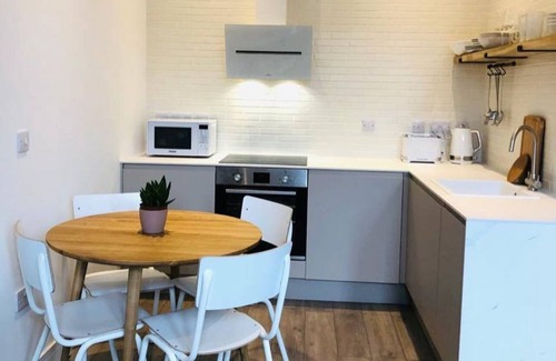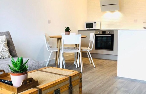 Located in the heart of Arbroath, the former "Keptie Hotel" has been transformed into a set of modern and stylish boutique apartments. Seconds from the Train station and bustling Westport, with an eclectic mix of pubs, eateries and retail shops. The space is perfectly equipped to cater for your stay in Arbroath. it's also a short walk from the harbour and very centrally located for easy walking to all of the towns attractions. there is a private garden at the rear of the property & a real sun trap when the weather permits. Modern & stylish kitchen and living space with lots of amenities! Comfortable and perfect for your next stay in Arbroath
