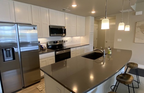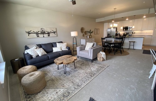 Beautifully furnished and brand new one bedroom one bath condo in west Windsor, Colorado. Conveniently located 15 minutes from Fort Collins, Loveland, and Greeley, and one hour from Downtown Denver. Master bedroom has a king-sized bed and the living room offers a queen-sized pullout couch for additional sleeping space. One car garage included with access to the condo through an interior hallway. Wheelchair accessible with a secure entry and an eastern facing patio (to watch the beautiful Colorado sunrises!). Pool and tennis courts across the street, so bring your suit and rackets. Clubhouse is located across the parking lot, with a gathering space, fully-equipped workout room, sauna and outdoor hot tub. Come work remotely, visit family, or just get away and enjoy all the outdoor experiences Colorado has to offer. Walking distance to a driving range, multiple breweries, restaurants and walking trails with mountain views. We're happy to recommend activities and great places to eat; just ask!