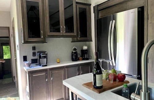 Creekside is one of the most beautiful spots on the Esopus Creek. Sit back, relax and listen to the sounds of the creek rushing by, and watch for the eagle making its way down along the water. Sip your morning coffee or your Happy Hour libations in the rocking chairs on the Porch at Creekside. Watch as the evening sun sets behind Mt. Pleasant. This is luxury in a quiet rustic setting. This 40' Park Model RV has everything you need to make this an enjoyable, comfortable and memorable stay. Just check our reviews here and on airbnb. Our guests say it all!