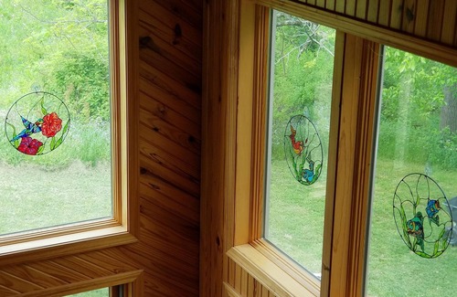 Relax by the fire, pitch horseshoes or nap in the Hammock down by the river. Cards, cribbage, corn hole, crokinole and a dartboard if you like games. AC, Heat, Galley Kitchen, indoor fireplace, washer/dryer, sheets, pillows and towels. There is also wifi, Internet TV ROKU and plenty of DVD movies.