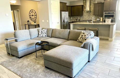 This open concept home features a gourmet kitchen with granite counters, large dining area and comfortable couch with 65 inch TV. Lounge by the pool or enjoy the view and tranquility from the outdoor couch. Fire up the BBQ and dine al fresco. The master suite greets you with a comfortable king canopy bed and a 65 inch TV. Soak in the luxurious tub in the attached bathroom.