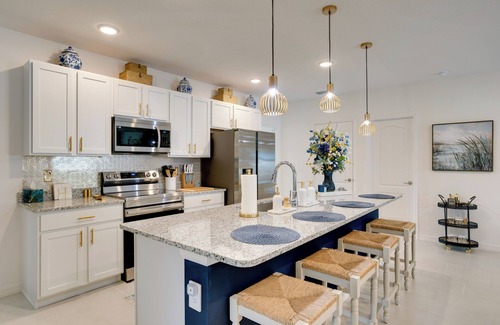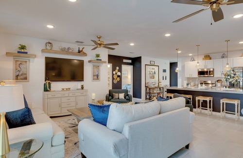 Whether you’re here to practice your golf swing, embark on world-class fishing trips, or find your new favorite souvenir during a shopping spree, this 4-bedroom, 2-bathroom vacation rental in Port St. Lucie provides the perfect launching point for all your adventures. The stunning home boasts a bright interior with modern amenities and Smart TVs in every room, and a spacious yard equipped with a gas grill, multiple seating areas, and a shaded hot tub. Your Sunshine State adventure awaits!