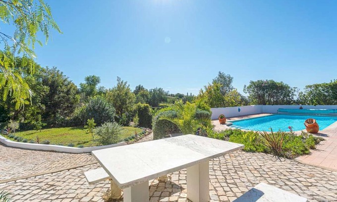 Quinta da Alfazema is a delightful countryside villa designed to accommodate six adults and two children. Nestled in a serene location far from the bustling tourist hubs of Algarve, this property spans across two acres of land, providing ample space for leisurely strolls and outdoor activities. The centerpiece of this charming retreat is a sprawling 13m x 5m heated swimming pool, an inviting outdoor dining area, and a comfortable lounge space. Further down the garden, a floodlit tennis court beckons enthusiasts.
