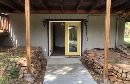 Newly built (2019) and redecorated (2022) private ADU in walkout ground level basement of home in Carriage Hills neighborhood. Fully furnished sleeps 1-4 comfortably, Broadband internet, w/d off full bath, nice kitchenette w/microwave convection oven, work area w/desk alongside eating area, nice outdoor patio.