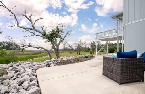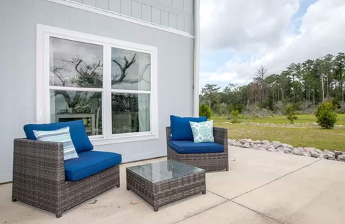 Relax at this peaceful place to stay. Gated access with no neighbors. 8 minutes from downtown Beaufort and Radio Island beach. Water views from the interior of the unit. Luxurious bathroom, kitchen, and laundry room. Large TV in the living room. Plenty of playing space outdoors, including a basketball goal and playing field ideal for soccer or football.