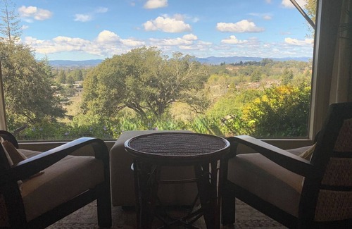 Bathed in natural light with expansive views, Chill Hill is a private hilltop getaway that's perfect for a memorable, relaxing wine country holiday. Set on nearly an acre of lush grounds, it's a well-kept, casual designer home that's perfect for indoor and outdoor living.