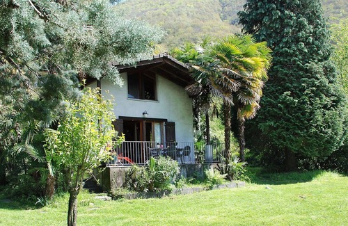 Scaiano-Caviano 24 km from Locarno: Cosy "rustico" cottage "Pipistrello", 2 storeys, detached, surrounded by trees, meadows and vineyards. On the outskirts Scaiano, in the district Gambarogno, in a quiet, sunny position. Private: property, meadow, beautiful garden to relax. Outdoor shower, patio, pergola, terrace, garden furniture, barbecue. Motor access to 400 m from the house. 400 m footpath (70 steps) to the house. Public parking 400 m on the road. Shop 3.7 km, grocery 3.7 km, restaurant 700 m, bus stop 400 m, lake Lago Maggiore 1.5 km. Minigolf 13 km, walking paths from the house 10 m. Nearby attractions: Locarno-Ascona 25 km, Isole di Brissago 30 km, Mercato Luino 17 km, Mercato Ponte Tresa 30 km, Swissminiatur, Melide, Schoko Fabrik, Caslano. Well-known lakes can easily be reached: Lago Maggiore, Lago di Lugano, Lago di Como. Hiking paths: Monte Gambarogno, Monte Tamaro, Monte Lema, Cardada. Please note: car recommended. Suitable for families, baby equipment on request (extra). Object suitable for 2 adults + 2 children. Animals in the neighbourhood.