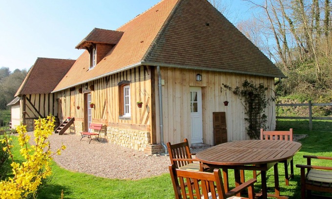 "Les Prés Rousselins" is a charming cottage located in a cul-de-sac, just 1 km from the center of Courtonne-la-Meurdrac, France. It offers a private, fenced property of 250 m2 with a well-kept garden and lawn, perfect for a relaxing holiday rental. The cottage features a yard, internet WiFi, and parking on the premises.