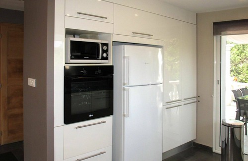 The house is well-equipped with a range of amenities to ensure a comfortable vacation. These include a washing machine, iron, children's high chair, baby cot, and internet (WiFi, free). Outdoor spaces include a balcony, terrace, and a garden with terrace furniture and a barbecue. Other amenities consist of a fireplace, heating, dishwasher, microwave, and television. It can accommodate a maximum of 6 guests, with 2 bedrooms and 2 bathrooms.
