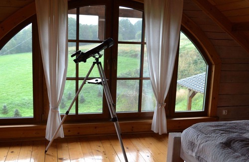Large, beautiful, comfortable single-family house "Bieszczady Chata", built in 2015. On the outskirts, in a quiet, sunny, elevated position on a slope, in the countryside. For shared use: property 3'500 m2, natural garden 2'500 m2, lawn for sunbathing. Hot tub, table tennis, terrace, garden furniture, barbecue, children's playground. In the house: trampoline, central heating system, washing machine. Available: bicycles. Steep motor access (via unmade road). In Winter: please take snow chains. Parking at the house. Carport. Shop, grocery, bus stop 800 m. Ski lift 35 km. The summer kitchen allows guests to stay outdoors all the time and enjoy the beautiful views. You can buy vegetables, fruit and cold-pressed oil on site. You can try local products (also available for purchase) or order a homemade dinner. Homemade dinner can be ordered at least 3 days in advance. Winter - winter sports, T-bar lifts (10 km) and chair lifts (Puławy Górne - 36 km). At a distance of 50 km. Slovakia, Svidnik - a large Aquapark with thermal waters.