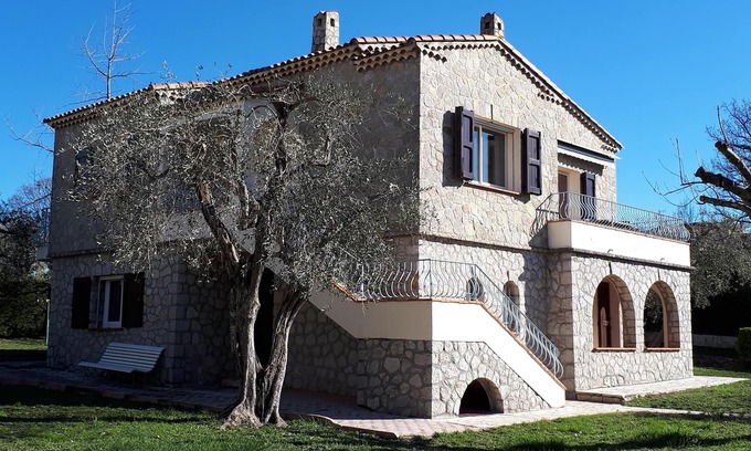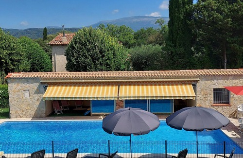 In a beautiful Provencal stone villa in the middle of a 2500m2 garden with many centuries-old olive trees, you will love the view of the mountain and the surrounding villages from the living room on the first floor ... You can relax in the large 14m long and 6m wide swimming pool, take your meals in the large fully equipped pool house (kitchen, shower and WC), sunbathe on the deckchairs ... Or, if you prefer, read, play table tennis, watch TV, enjoy your bedroom or the large living room with American kitchen ... It is the ideal place for a holiday with family or friends (4 bedrooms with double bed)! The property and the swimming pool are completely private.
