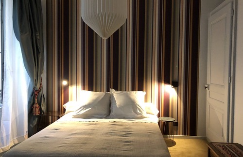 In the calm of the second floor of a building dating from the 18th century, this charming 85m2 apartment can accommodate up to 4 people. The whole, very comfortable, is furnished in an elegant classic French and contemporary decor to feel at home in a unique decor.