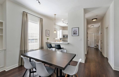 Guests enter through the foyer which leads into a full kitchen featuring top-of-the-line appliances and everything you'd need to prepare a meal. Our home has an open floor plan and the kitchen sits just next to the dining table, sitting area, and living room. We also have a large office with a desk and computer monitor making it a perfect spot to work from "home". The three bedrooms are upstairs as well as a shared bathroom connecting two of the rooms. The master bedroom features a beautiful and expansive en suite bathroom.