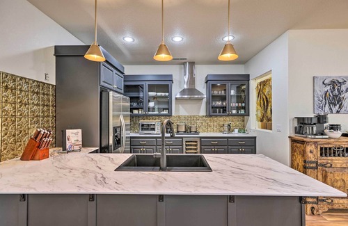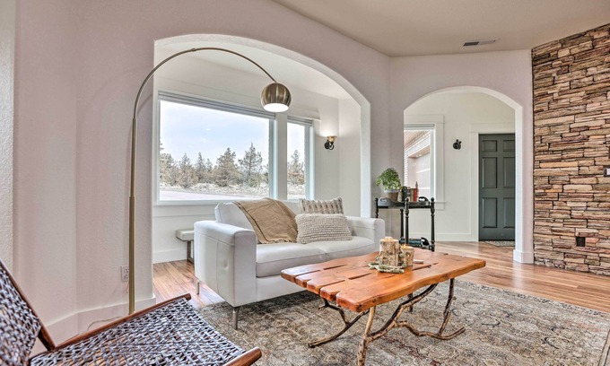 Say goodbye to streetlights and traffic jams and hello to vast blue skies and sweeping mountain vistas at this 2-bed, 1-bath vacation rental. Located on a rural ranch just 30 miles outside of Bend, this abode offers gorgeous scenery both inside and out. You'll love the elegant mid-century modern decor, along with top-tier amenities like the kitchen and fireplace. Venture out and explore local state parks, or simply kick back, relax, and breathe in the beauty of the Cascade Mountain Range.