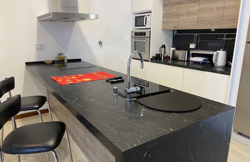 -KITCHEN: Premium, spacious design with Island/Breakfast area, hierarchical furniture, Smart TV 49', grill integrated into the patio ideal for cooks who like to entertain guests, Gas oven, Extractor fan, Coffee maker, Blender, Toaster, Sandwich maker, Complete crockery and all the necessary utensils to cook whatever you want.