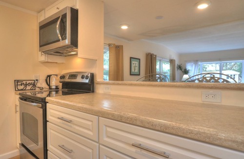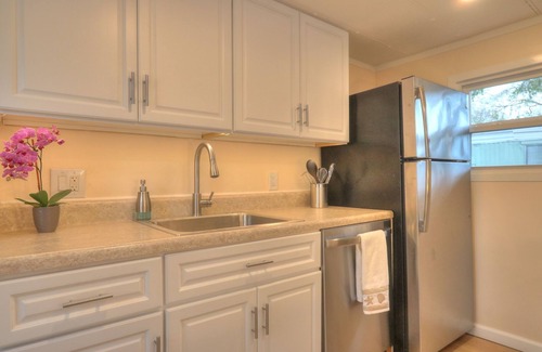 BEAUTIFUL remodeled furnished house at Lake Linda in highly desirable location in a residential neighborhood and located close to shopping, restaurants, and entertainment. Spacious 2-bedroom house completely remodeled with new kitchen, bathroom, windows, doors, luxury VPF floors, and light fixtures. Excellent quality furnishings and a kitchen equipped with everything you need: new stainless pots and pans, glassware, plates, bowls, eating and serving utensils, cutting board, various spices, coffee maker, hot water kettle, etc. Just bring your food, and everything else is provided for. New high-quality kitchen cabinets (with soft-close doors and drawers), new dishwasher, all stainless-steel appliances, full-size refrigerator and range-oven, microwave. Breakfast bar and separate dining table. You’ll enjoy city water (no well water) plus a deluxe 4-filter reverse-osmosis water filtration system in the kitchen for the purest water you can find!