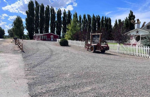 Come enjoy this peaceful retreat in Olathe on site at the wedding venue of Lock, Stock & Barrell. This beautiful house sits on the edge of an 11 acre property that showcases our rustic barn venue. In the house you'll find plenty of room for you and your crew with 3 bedrooms, 2.5 baths, a living room with bunkbeds, full kitchen, laundry room, and a scenic back porch with beautiful views of the Grand Mesa. Not only the views, but you'll love the tranquil atmosphere this quiet area provides. We know you'll love your morning and evening brews on the front porch with the beautiful views, and the cozy sound of our lovely chickens just at the end of the property! Montrose is only 20 minutes away, and Delta is 15 minutes - both are easy to get to for activities, shopping, and restaurants! The Black Canyon of the Gunnison National Park is only 38 minutes from our home, and the Grand Mesa is about an hour. After your adventure, return home to watch the sunset, enjoy the Colorado air, and relaxing back porch.