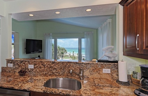 Enjoy this beautiful, renovated Gulf-front sunny unit with vaulted ceilings, spectacular views with accommodation for up to 6 and private beach.