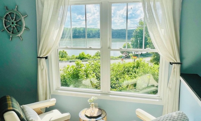 Discover the beauty of historical Aurora enjoy the quiet charming setting of this peaceful spot right by the river walk, you can relax with the whole family in a spacious living space overlooking the Ohio river and Kentucky. This is the most gorgeous river view in this small historical town.