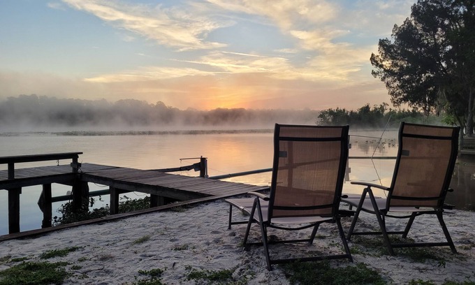 Enjoy one of the most spectacular waterfront views in Florida, directly on the St. Johns River, within the Ocala National Forest! Watch the sun rise from your dock. See owls, hummingbirds, deer and manatee in your own back yard. Pristine natural beauty abounds in all directions while you have every amenity in your own private home.