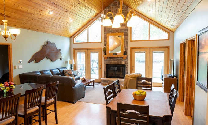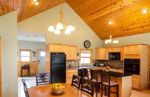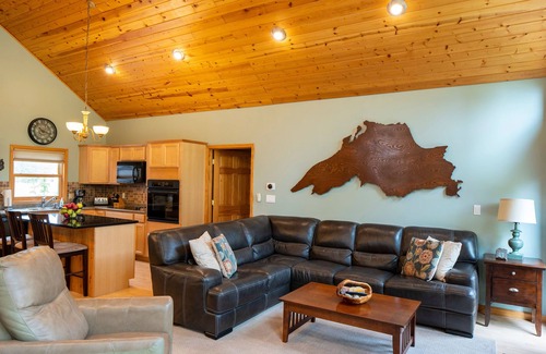 The single floor design draws you in with open space mixed with coziness throughout the home. The house comfortably fits six people. It is the perfect starting point to enjoy your northwoods vacation.