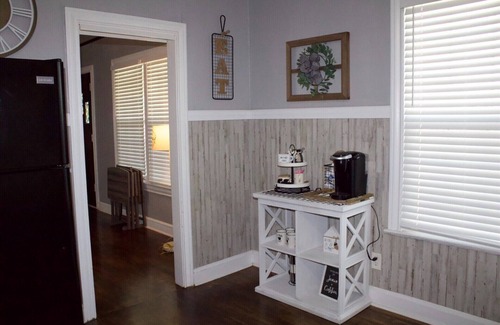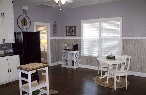 A beautifully re-done historical home located in the heart of Monahans! This home was built in 1910 and has a rock from all 50 states used in the building of it. This home boasts 3 inviting bedrooms, two with a queen bed and one with a twin over full bunk bed, 2 bathrooms, an open living space, kitchen and dining area. With amenities like a washing and drying machine, AC, heating, Free parking, and WiFi, guests will have everything they need for a comfortable stay. This property is the perfect space to host get-togethers or just stay in for the weekend! Our place will help you feel at home while you're traveling in Monahans.