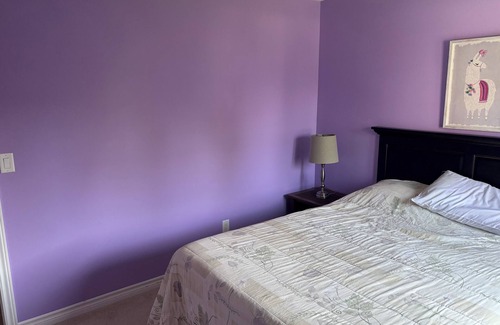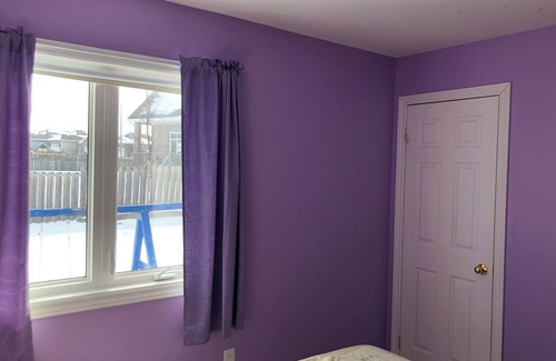 Bungalow house with homey-feel in a good neighbourhood. Triple driveway; ample room for your car. Carpeted sleeping quarters, to and from bedroom to bathroom. Blackout curtains for a good night's sleep.