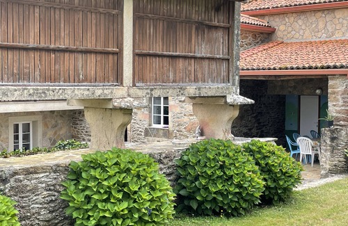 It is an old stone house completely restored with 4,000 m2 of land. It is surrounded by mountains and meadows. It has granary and water well. Also a lareira with its bread oven. The farm is planted with trees: fig trees, quince, other fruit trees, walnuts, a chestnut tree, a couple of strawberry trees, plants and flowers. It has many different spaces to be. It also has a "curro" which is where the animals used to enter. Their stables have been rehabilitated and are part of the house.