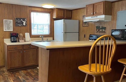 This lake front property has amazing views, it is a quite relaxing atmosphere with a private dock .This Lakefront cabin has 2 bedrooms bath.. utility room.. screened in porch. This Rental also includes fishing boat with battery powered trolling motor and a canoe. The lakefront property is located just 15 miles from the famous JACK DANIELS DISTILLERY in Lynchburg Tenn.. Lincoln Lake is a private lake which does not allow gas powered boats . The nearest airport is Huntsville International which is 59 miles away. Lincoln Lake is a stocked private lake you are welcome to fish and a boat with a trolling motor will be provided. The lake and boat are only a few steps from the porch. This area is part of the famous bourbon trail! This is a great place to unwind and hunt or fish .The Flintville Wildlife Management Area is 5 minutes away its a 1000 acres of good hunting and the lake is only a few steps from the porch! We have just added internet!