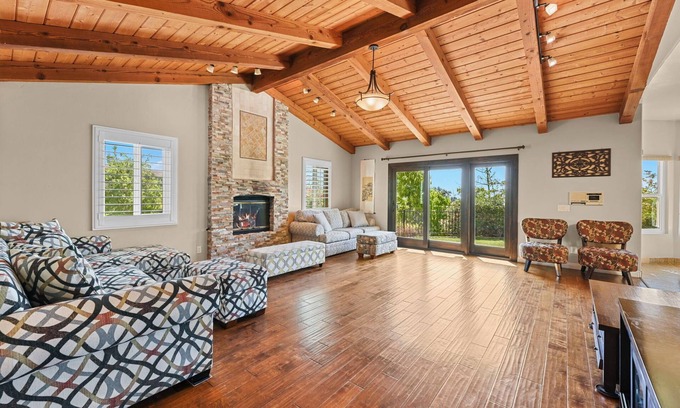 Best-rates for the Fallbrook house starts from $513 per night with includes Pet Friendly, TV, Security/Safety, Sports/Activities, Fireplace/Heating, Entertainment, Hot Tub, Child Friendly, Internet, Laundry, Barbecue/Outdoor Cooking, Balcony/Terrace, Kitchen, Air Conditioner, Parking, Bedding/Linens, Wellness Facilities, Other with all other amenities. Perfect for Weddings is committed to ensuring every guest experiences a comfortable and extraordinary stay, whether planning a romantic getaway, a honeymoon, a pet-friendly stay, or celebrating with the entire wedding party.
