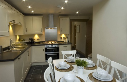 The kitchen, with all modern conveniences including 4 ring gas stove and double electric oven, has a dining table for 8 people and a television with Freeview. Leading from the kitchen is a utility room with washing machine and tumble drier. Also just off the kitchen is a sunroom which leads to the courtyard garden with outdoor seating and barbecue.