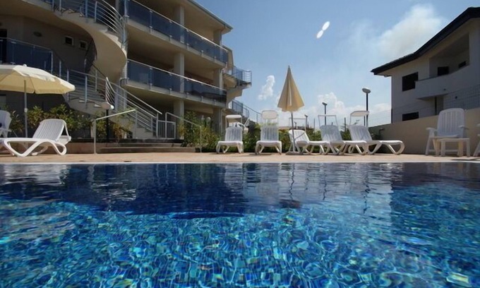 Yes, this beautiful sea view apartment has a swimming pool. Check the Facility Overview section for details about the pool and other available facilities.