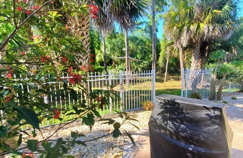 We are located next to Kashi Ashram, Yoga School (open to take classes), walk the wooded trails and access boardwalks on the Sebastian River. Kayaks river rentals 2 minutes drive, Skydive Sebastian 1 mile away, local boat rental & tours 10 minutes. Atlantic beaches are 20 minutes drive, Melbourne & Vero Beach seaside towns & farmer markets, airboat tours 30 minutes. Not to forget Nature park trails all around & Intracoastal waterfront restaurants & bars just 10 minutes away.