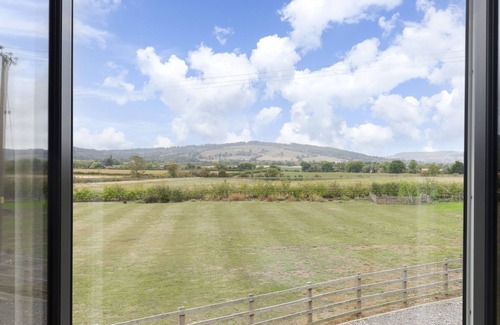 Upstairs, the space opens into a bright and airy open-plan living, kitchen, and bedroom area. The fully equipped kitchen has everything you need to cook and dine in style on it's breakfast bar, while the king-size bed invites restful nights. A smart tv lets you access your own streaming accounts, and the Juliette balcony opens wide to reveal breathtaking countryside views—a perfect spot to enjoy your morning coffee or unwind at sunset.