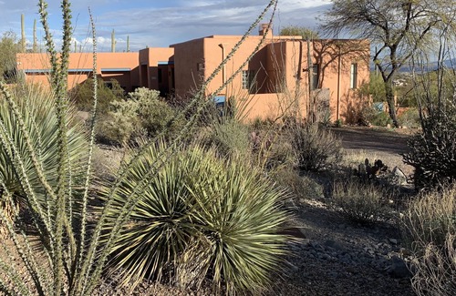 Incredible long-views of the Catalinas, Rincons, and lights of downtown Tucson; walk out the back door to access wonderous walking, hiking, and biking trails of Tuscon Mountain Park/Saquaro National Park West. Passive and active water harvesting and irrigation provide for stunning ocotillo and saquaro (~75) growth along on-site property trail system. Raised bed with fresh herbs for cooking. SW facing covered porch for dining while sunset watching. Super mellow, serene setting in a neighborhood of other beautiful homes 10 minutes from downtown Tucson arts, music, and restaurants, 15 minutes from UA, 25 minutes from airport. 2600' elevation for refreshingly cool mornings and warm afternoons.