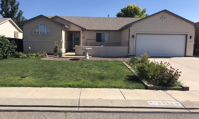 Close to the Colorado State Fair and the Chili Fest. Lots of room, spotless, three bedrooms, three baths and fireplaces. One King in Master, One queen in 2nd, and a double in 3 2 car garage, fenced in backyard. Completely finished downstairs with family room and bar. tv room upstairs. Hardwood floors, central air, quiet neighborhood, Fully furnished. All amenities that you could possibly need!