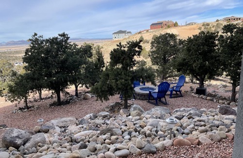 Close to Bryce Canyon, Zions Nat’l Park, hiking, waterfalls, Shakespeare Festival, fishing, rodeos, movie theaters, restaurants, on property walking trail. Plenty of sleeping room with private king size with fireplace and queen size bedrooms with ceiling fans, a living room with gas fireplace, kitchen, bath, patio, and firepit for roasting marshmallows or making s’mores.