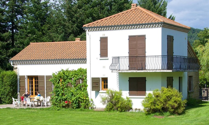 Lovely holiday home ideal for large families, with four bedrooms suiting up to 8 people plus an infant (there is a cot and high chair at the house). Chant-au-vent is a real home-away-from-home, yet nestled in the mountains of the Ardèche with stunning views. Chant-au-vent is set in approximately an acre of gardens with an outdoor dining area and patio.