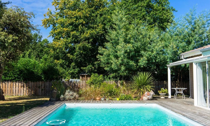 Beautiful * star wooden house - Zen atmosphere is located in Biganos. Beautiful * star wooden house - Zen atmosphere provides accommodation, featuring Pool, Balcony/Terrace, Security/Safety, among other amenities. This House features Pool, Balcony/Terrace, Security/Safety, to make your stay a comfortable one.