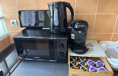 The kitchen is equipped with a dishwasher, as well as a coffee maker, an electric kettle, and cookware. Bathroom amenities include a hair dryer, towels, and toilet paper. And thanks to the washer and dryer, you'll even be able to travel light. Other amenities at this 1-bedroom, 1-bathroom rental include a BBQ grill, bed sheets, and heating.