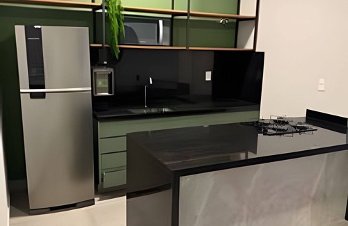 The Studio is fully integrated, has a kitchen equipped with an island, cooktop, coffee maker, refrigerator, microwave and all necessary utensils, a table for 2 people, a great sofa with a rug ensuring great comfort, a Smart TV to watch your favorite series, a great super comfortable double bed, with lamps around it and a super spacious closet, this unit has a bathroom with a great shower and also an exclusive backyard.
