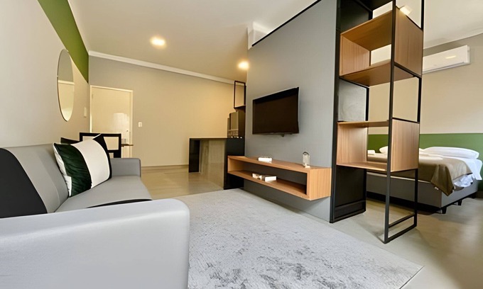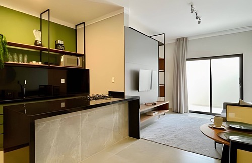 Enjoy an elegant experience in this well-located place. Beautiful studio apartment, fully equipped and furnished. Located in the best area of the city, close to everything. This unit has a private backyard. Bed linens, towels, soap and shampoo are included. The studio is fully integrated, has a kitchen equipped with an island, cooktop, coffee maker, refrigerator, microwave and all necessary utensils, a table for 2 people, a great sofa with a rug ensuring great comfort, a Smart TV to watch your favorite series, a great super comfortable double bed, with lamps around it and a super spacious closet, this unit has a bathroom with a great shower and also an exclusive backyard. Guests can use the garage, the laundry room by appointment and also the main entrance. Guests can contact us until 10 pm through the app or if they prefer, we have a 24-hour call center with staff on WhatsApp to meet any eventual need.